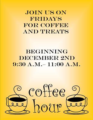 Join us starting on December 2 on Fridays for a cup of coffee and treats.