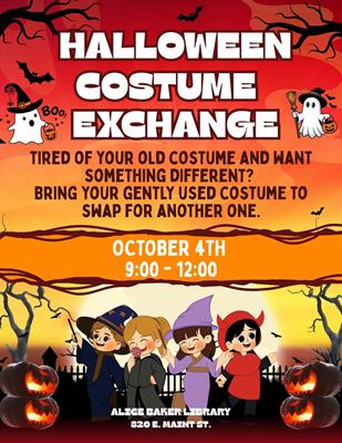 Tired of your old costume and want something new? Bring your gently used costume to swap for another one.