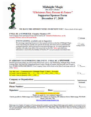 Sponsor fees vary Supporter/Sponsor fees info call chamber office 262-363-7758